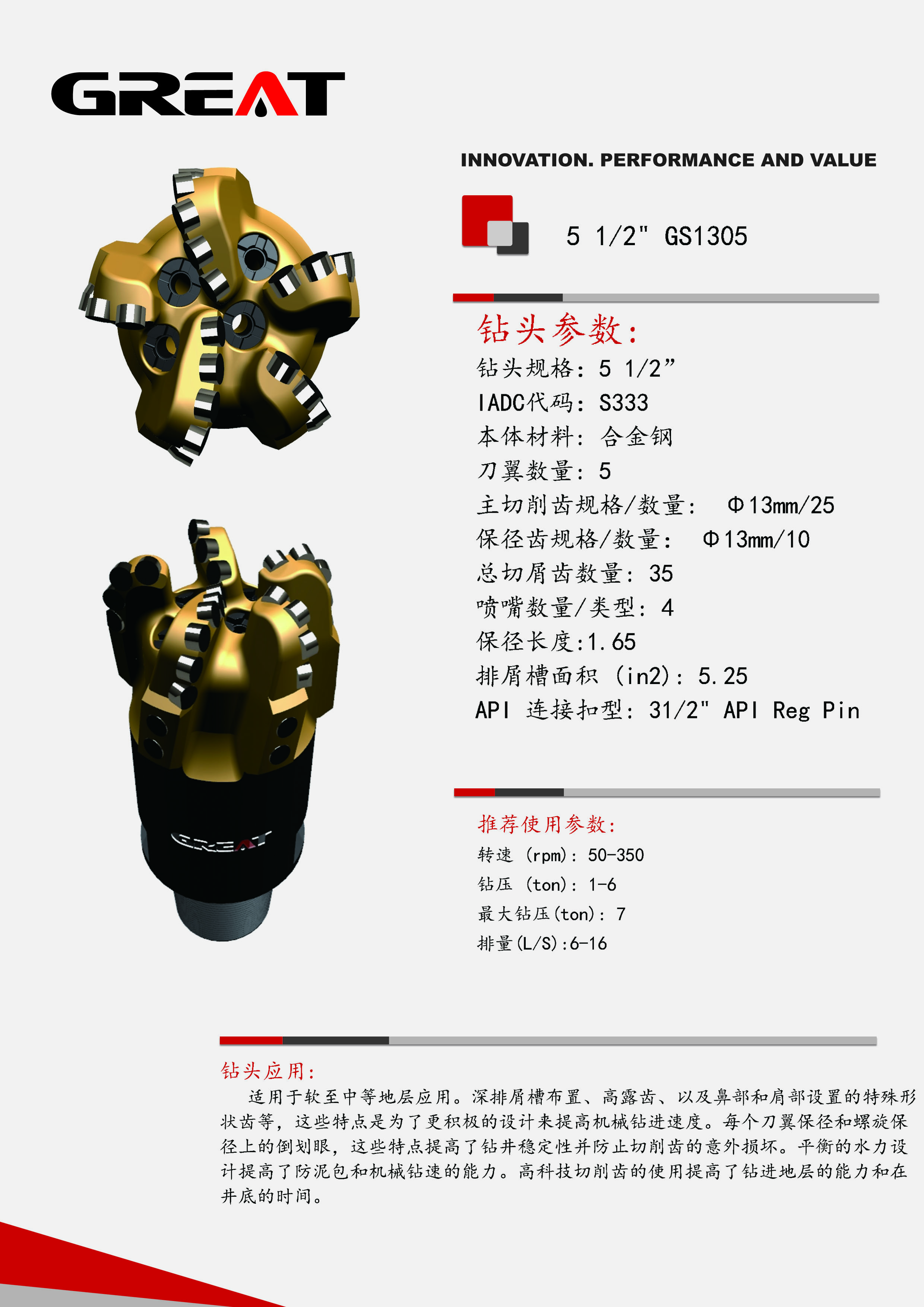 格锐特集团生产的钻头通过先进的技术,帮助切削齿保持更长时间的锋利,提高切削效率,提高机械钻速和耐久性,每个刀翼保径和螺旋保径上的倒划眼,这些特点提高了钻井稳定性并防止切削齿的意外损坏。