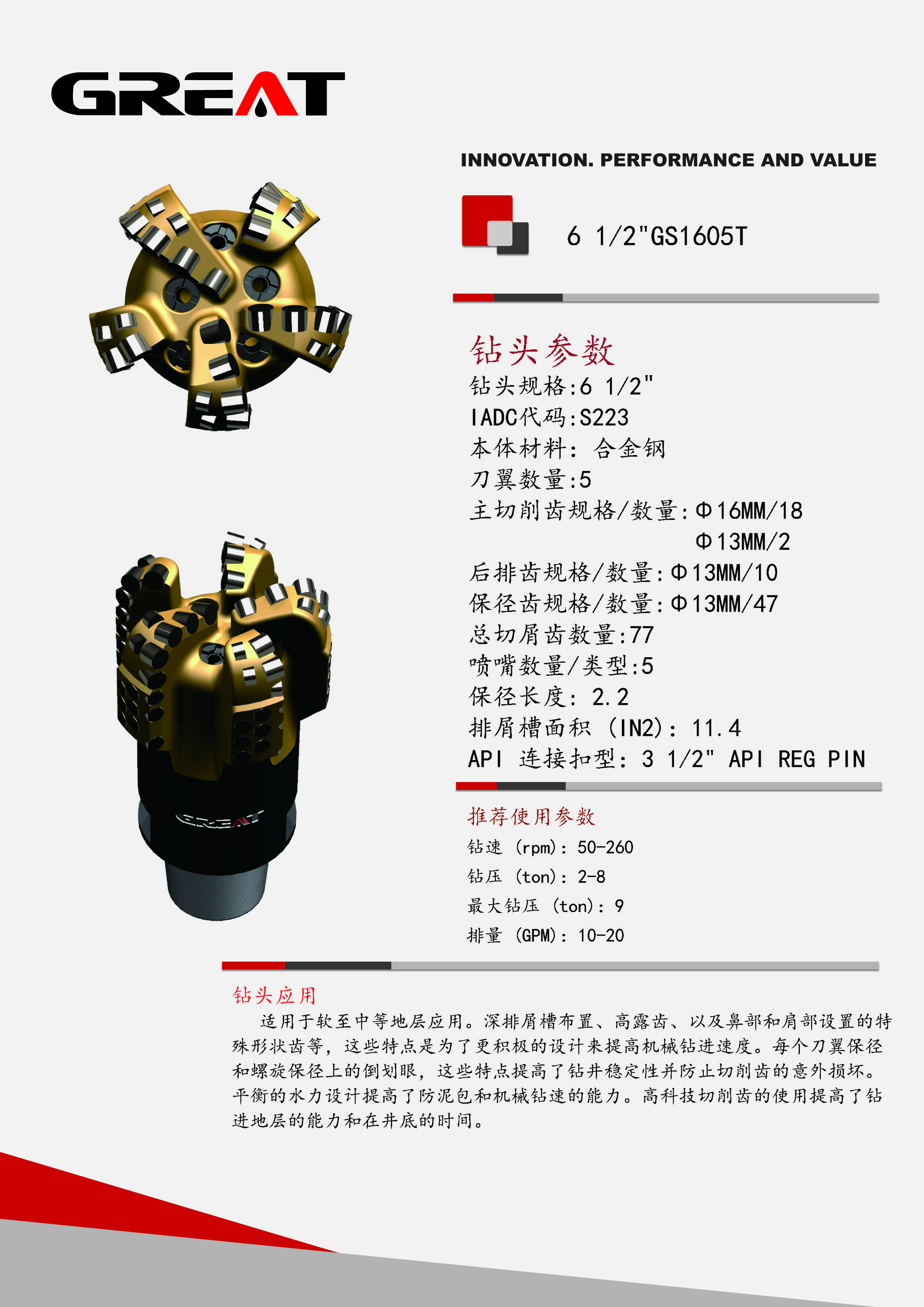 适用于软至中等底层应用。每个刀翼保径和螺旋保径上的倒划眼,这些特点提高了钻井稳定性并防止切削齿的意外损坏。平衡的水力设计提高了防泥包和机械钻速的能力。高科技切削齿的使用提高了钻进底层的能力和在井底的时间。