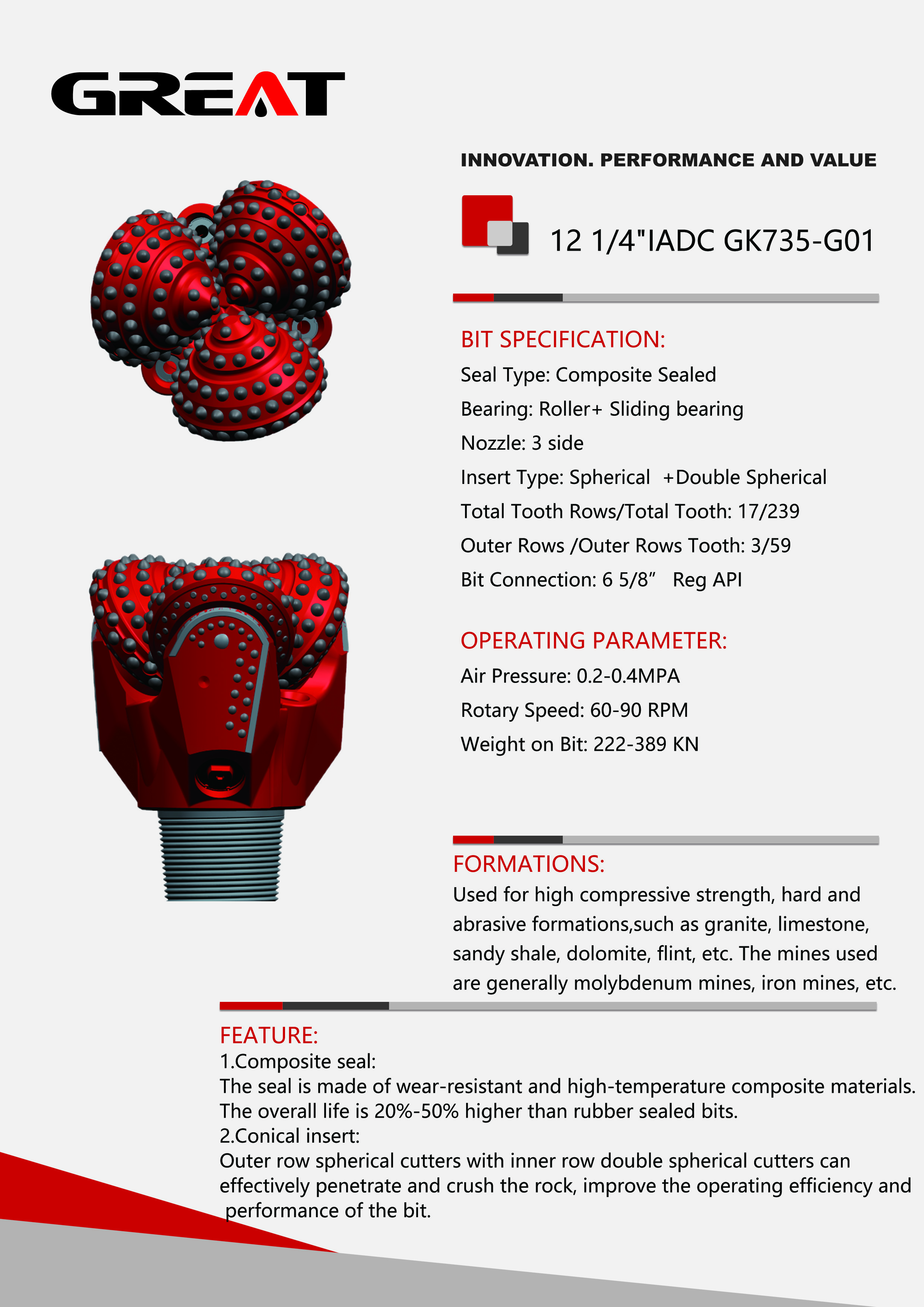 | WOB (KN) | 222-389KN |