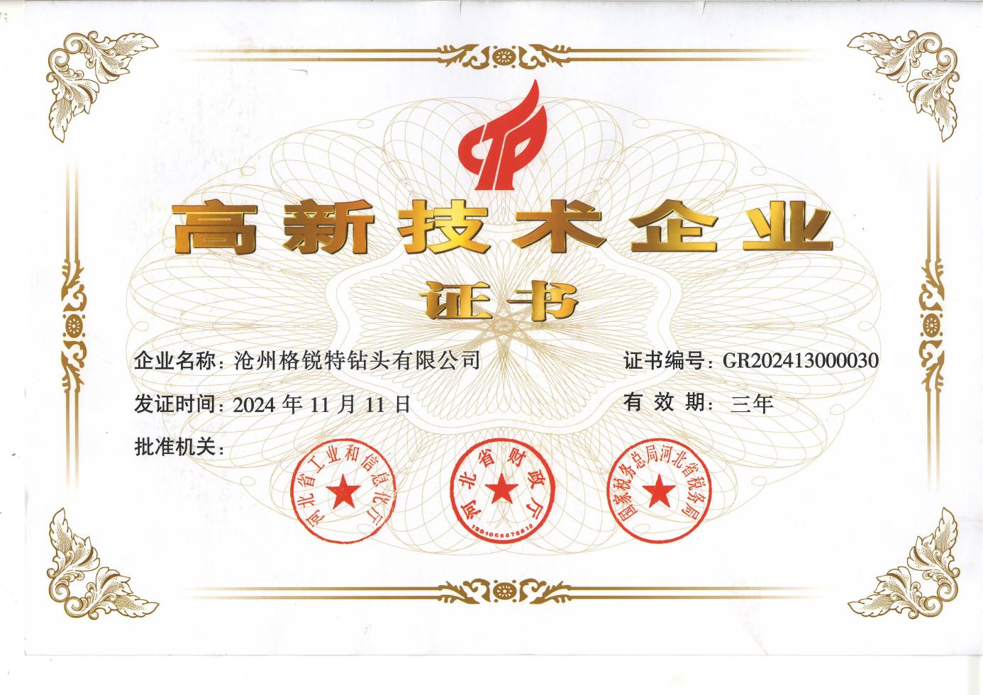 高新技术企业证书
